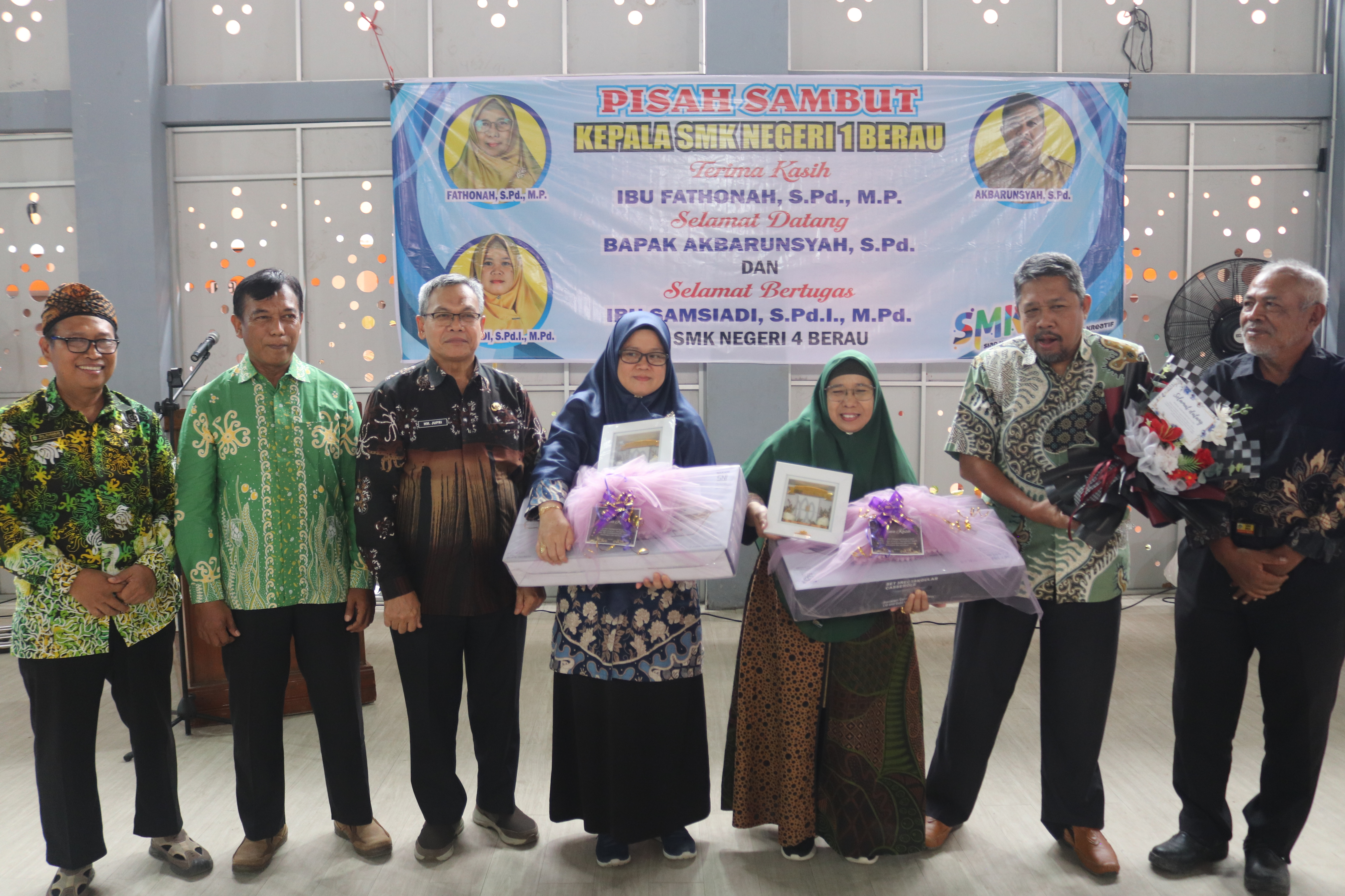 Selain itu, apresiasi dan doa terbaik juga disampaikan kepada Ibu Samsiadi, S.Pd.I, M.Pd yang kini mengemban amanah sebagai Kepala SMK Negeri 4 Berau. Ucapan terima kasih atas dedikasi dan kebersamaan selama bertugas di SMKN 1 Berau turut mengiringi doa agar beliau senantiasa diberikan kelancaran dan kesuksesan dalam menjalankan tugas di tempat yang baru.